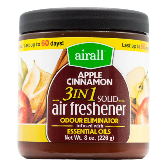 Airall 226g Air Freshener Solid 3 In 1 Odour Eliminator Infused With Essential Oils Apple Cinamon (12x Pack)