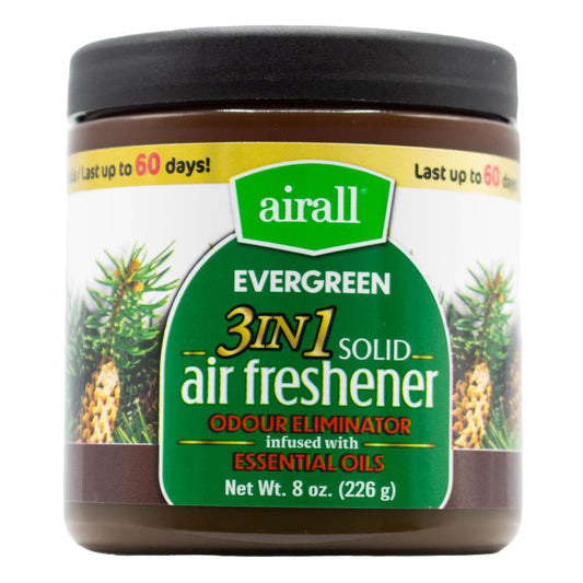 Airall Air Freshener Solid 3 In 1 Odour Eliminator Infused With Essential Oils Evergreen 226g (12 Pack)