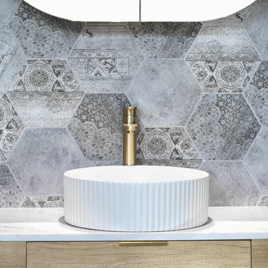 Marlo Round 400x400x125 Matte White Fluted Basin
