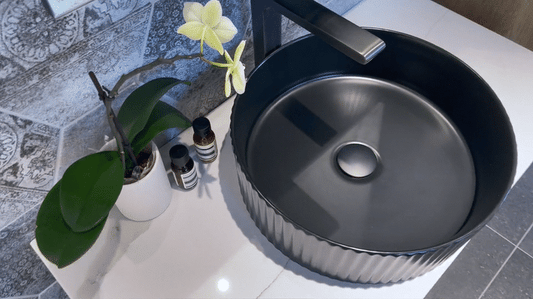 Marlo Round 400x400x125 Matte Black Fluted Basin