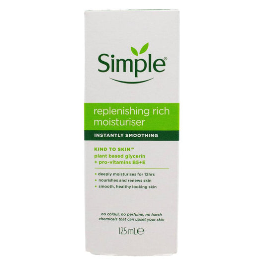 Simple Replenishing Rich Moisturiser Instantly Smoothing 125mL (6 Pack)