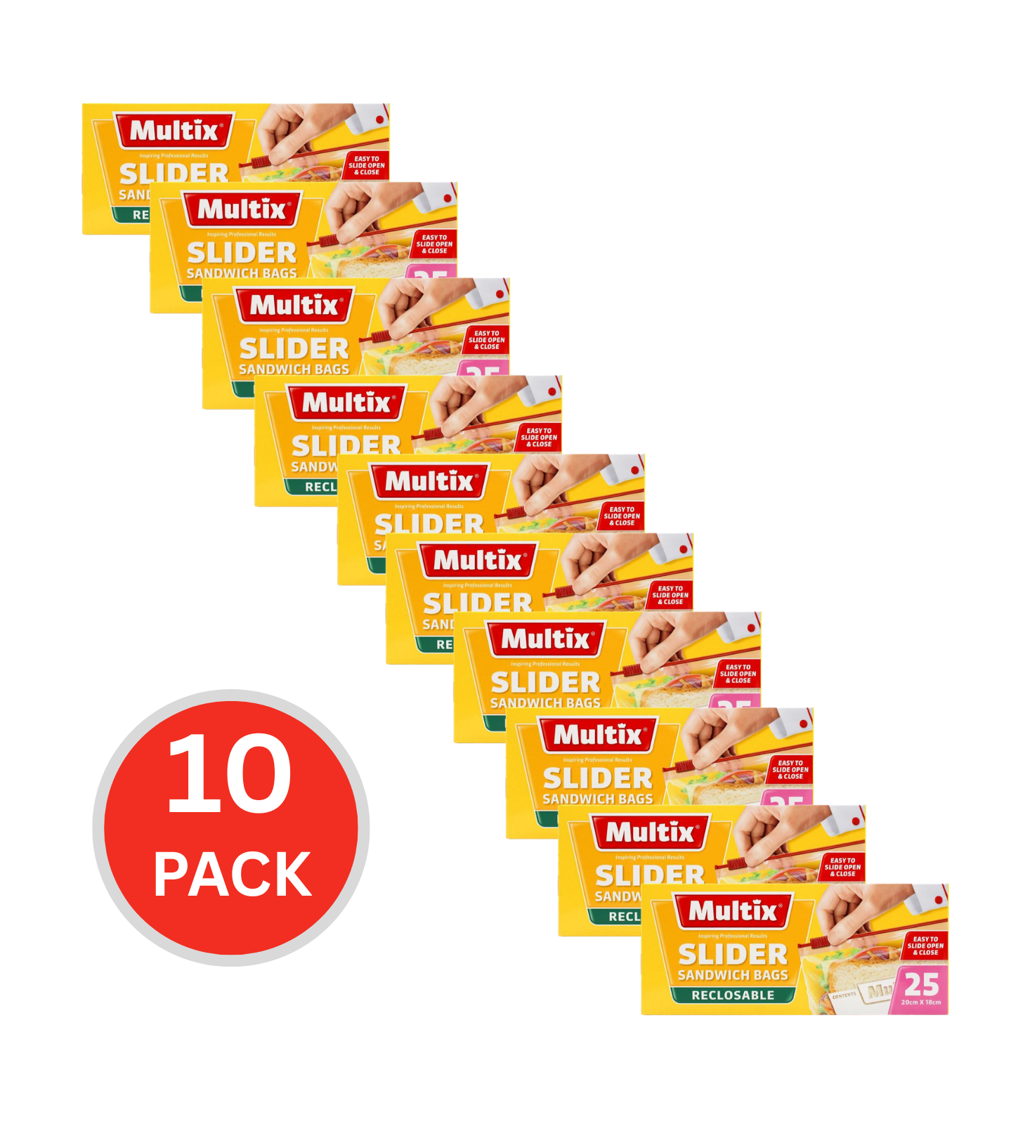 10x Multix Slider Sandwich Bags – 25 Pack Reclosable (20cm x 18cm)