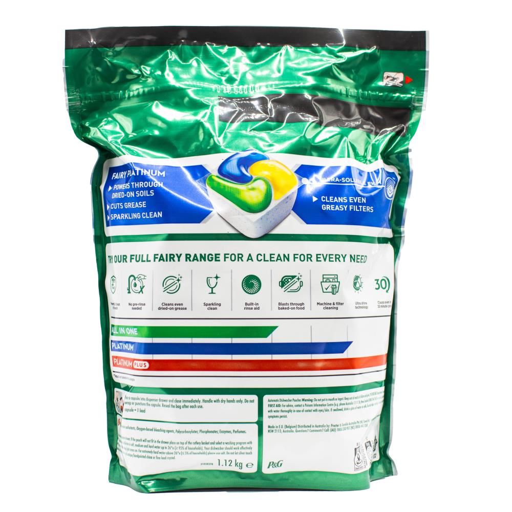 Enjoy powerful dishwashing with Fairy Platinum Dishwasher Capsules in a bulk 75-pack. These high-performance capsules cut through tough grease and stubborn food residues, delivering a brilliant clean and shine with every wash. Infused with a refreshing lemon scent, they leave your dishes spotless and smelling fresh – with no pre-rinse required.