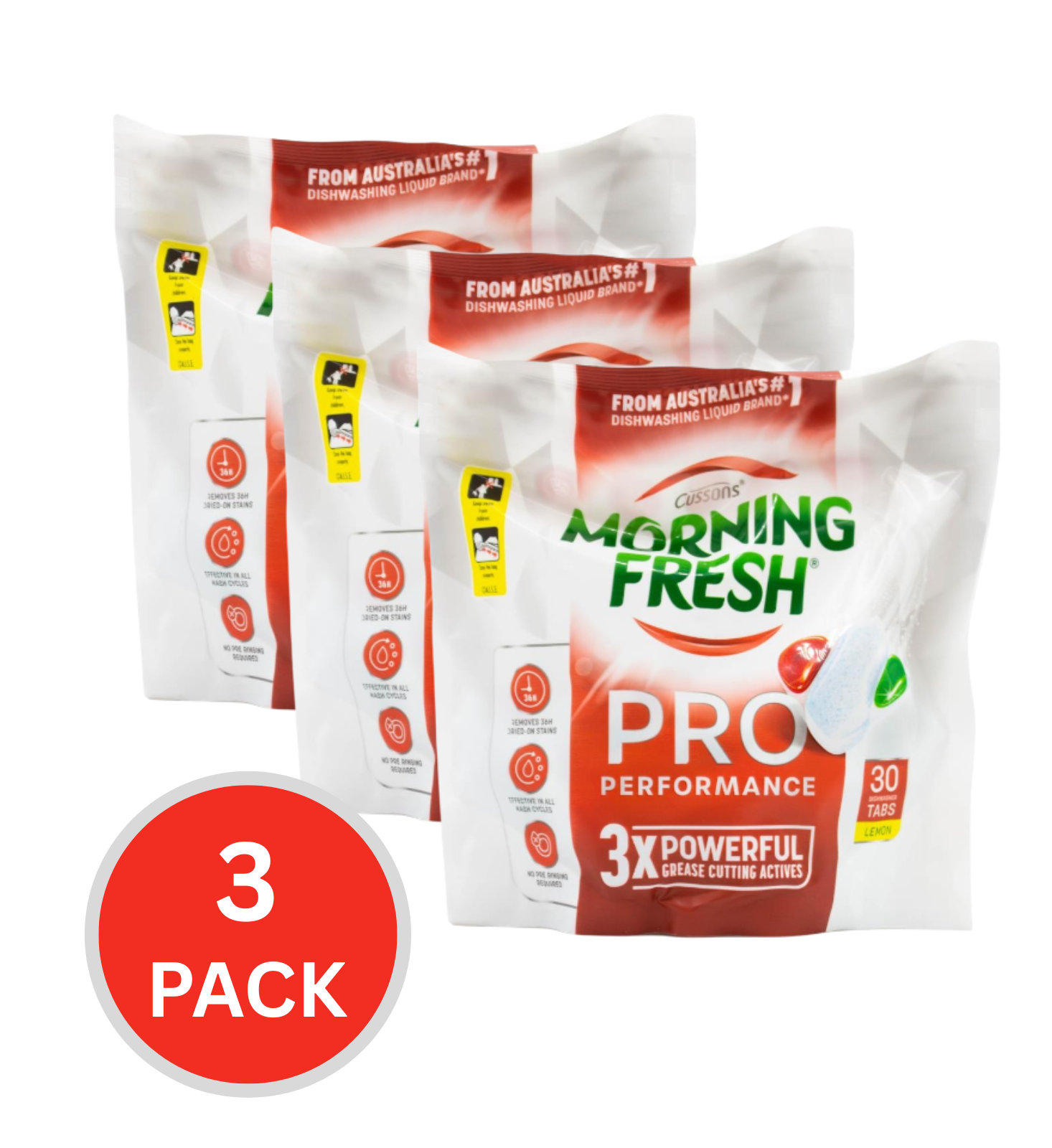 Morning Fresh Dishwasher Tablets Pro Performance 3x Powerful Grease Cutting Actives Lemon 3 x 30Pk (90 Tablets)