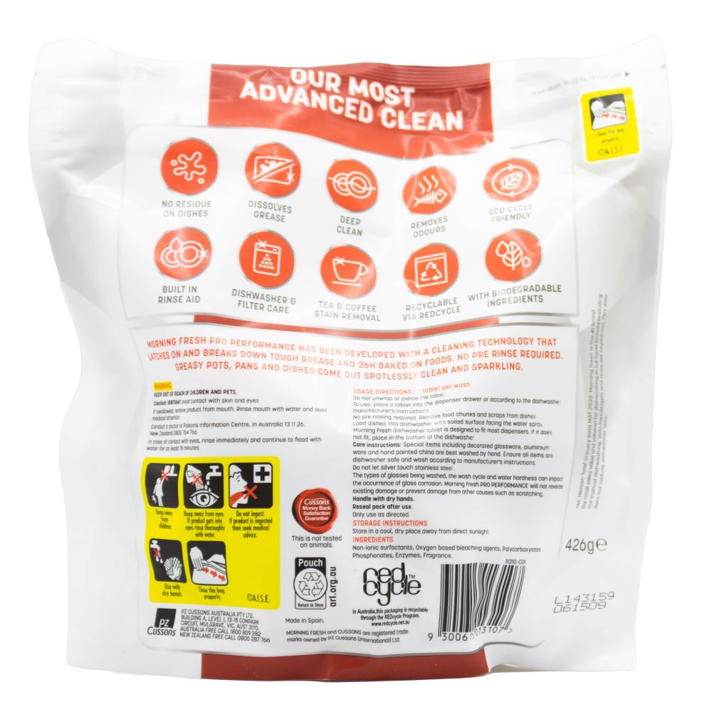 Experience superior cleaning with Morning Fresh Pk30 Dishwasher Tablets Pro Performance, featuring 3x powerful grease-cutting actives and a refreshing lemon scent. These high-performance tablets effortlessly remove tough food residues, stains, and grease for sparkling clean dishes every time. Designed for both everyday and heavy-duty loads, they deliver deep-cleaning power and fresh fragrance in one convenient tablet.