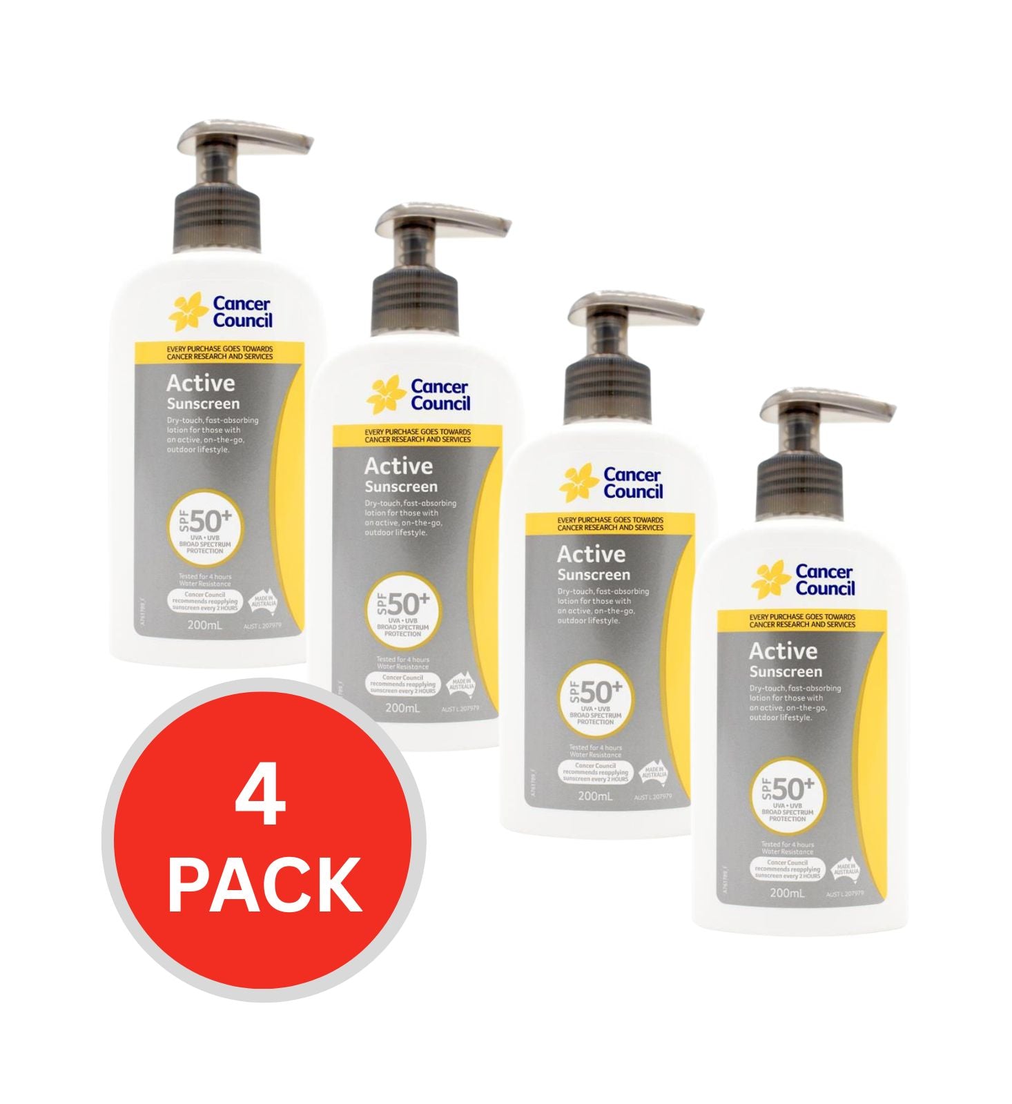 Cancer Council Active Sunscreen Spf 50+ 200ml (4 Pack)