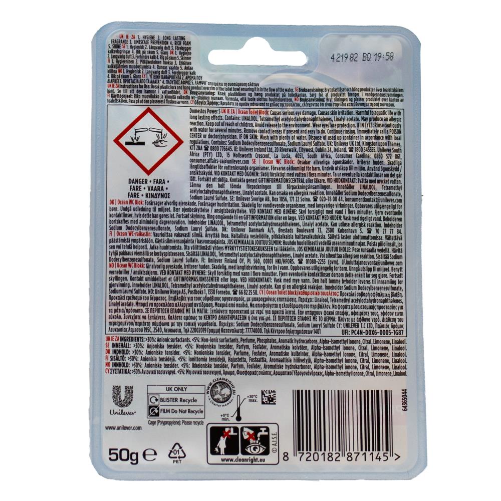 DOMESTOS 50g Toilet Cleaner Cage Power 5 Ocean (9x Pack) keeps your toilet fresh, clean, and hygienic with every flush. Its 5-power action fights limescale, removes stains, prevents dirt build-up, kills germs, and leaves a refreshing ocean fragrance. Easy to use and long-lasting, this bulk pack is ideal for home and commercial bathrooms.