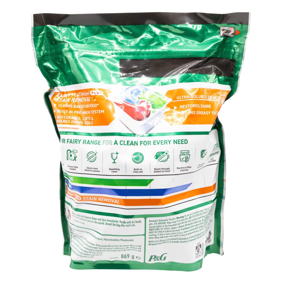 Give your dishes a superior clean with Fairy Platinum Plus Dishwasher Capsules. Each capsule delivers deep cleaning power designed to remove tough, baked-on grease while leaving a sparkling shine. The boosted stain fighter formula helps lift stubborn residues, making it ideal for heavy loads, pots, pans, and everyday dishes.