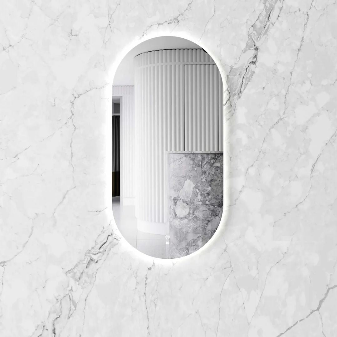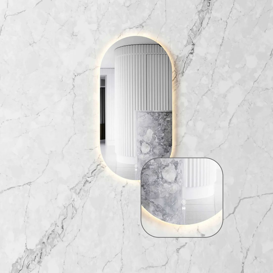 - Backlit LED Lighting: Soft, even illumination from behind the mirror