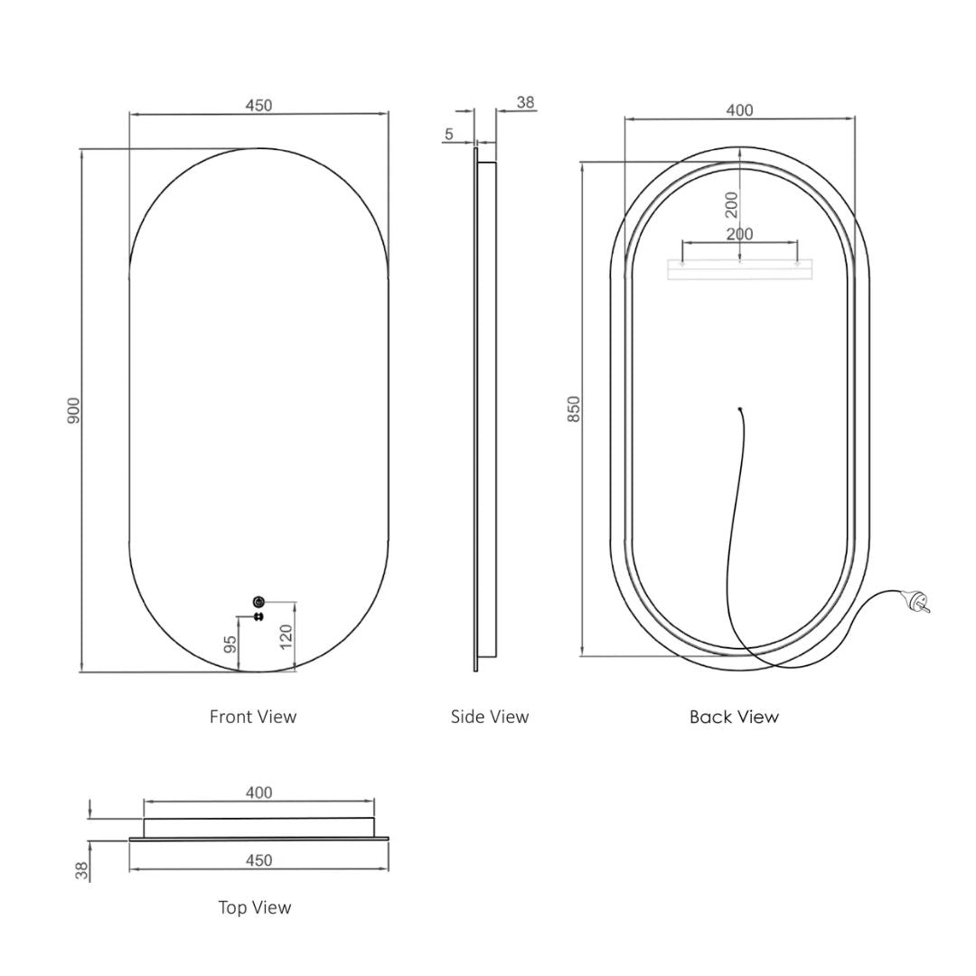 LED Noosa 900(H)x450(W) Frameless Mirror