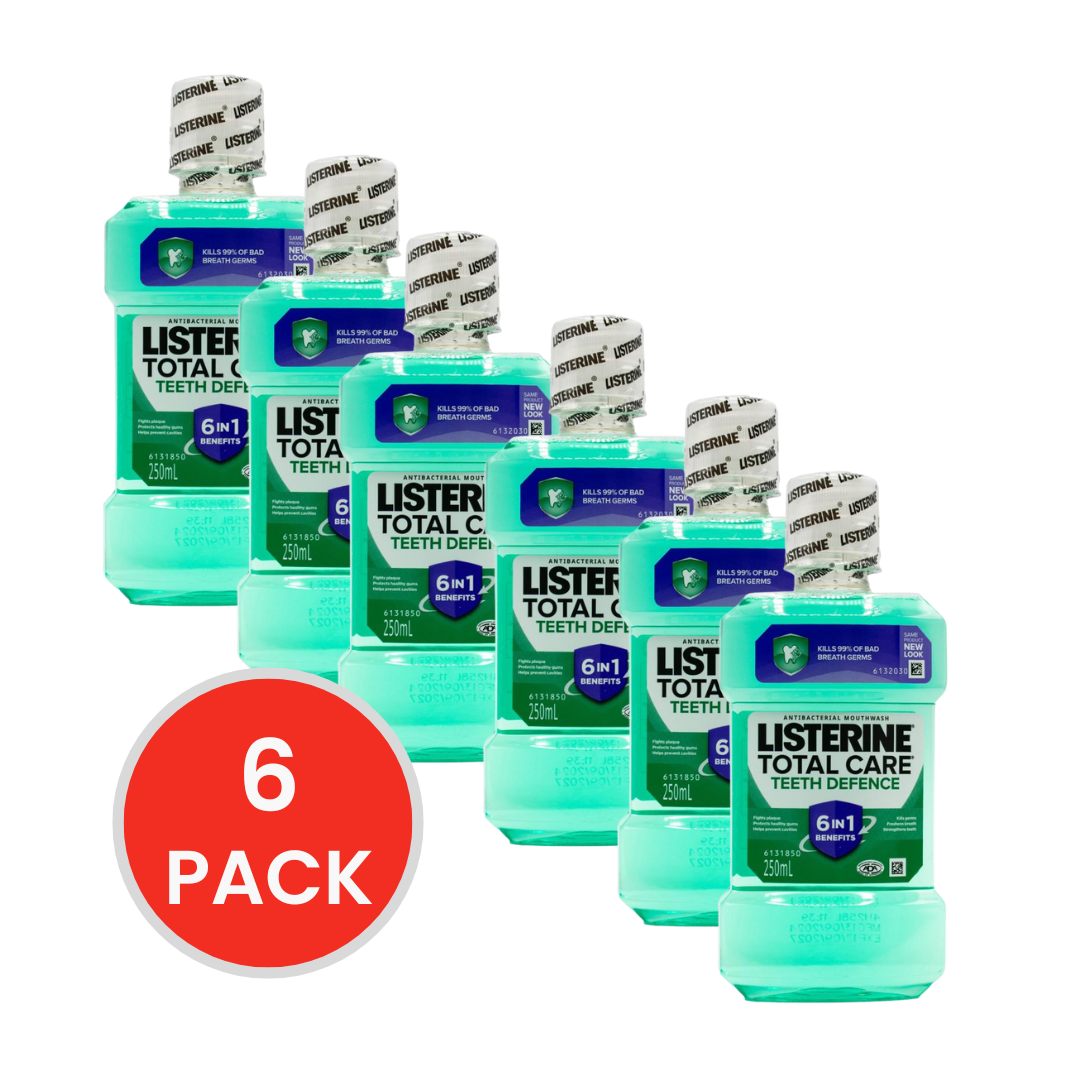 Get advanced oral protection in a compact size with LISTERINE Total Care Total Defence Mouthwash – 250mL (6x Pack). This powerful multi-benefit mouthwash offers 6-in-1 protection to help prevent cavities, strengthen enamel, reduce plaque, maintain gum health, freshen breath, and kill 99.9% of germs. With its clinically proven formula and convenient 250mL size, it’s perfect for on-the-go freshness or daily home use.