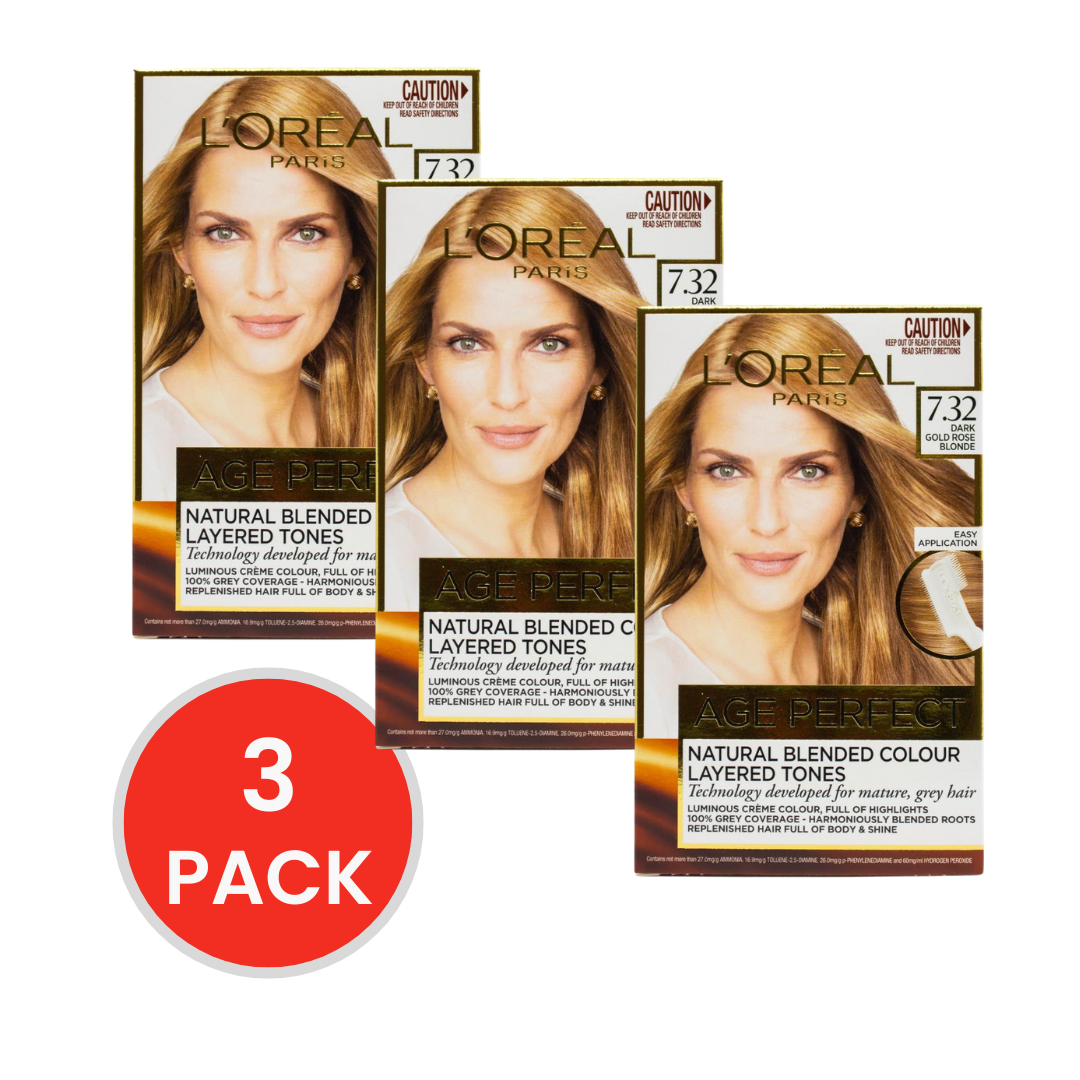 L'Oreal Age Perfect Hair Colour Dark Gold Rose Blonde 7.32 (3 Pack)