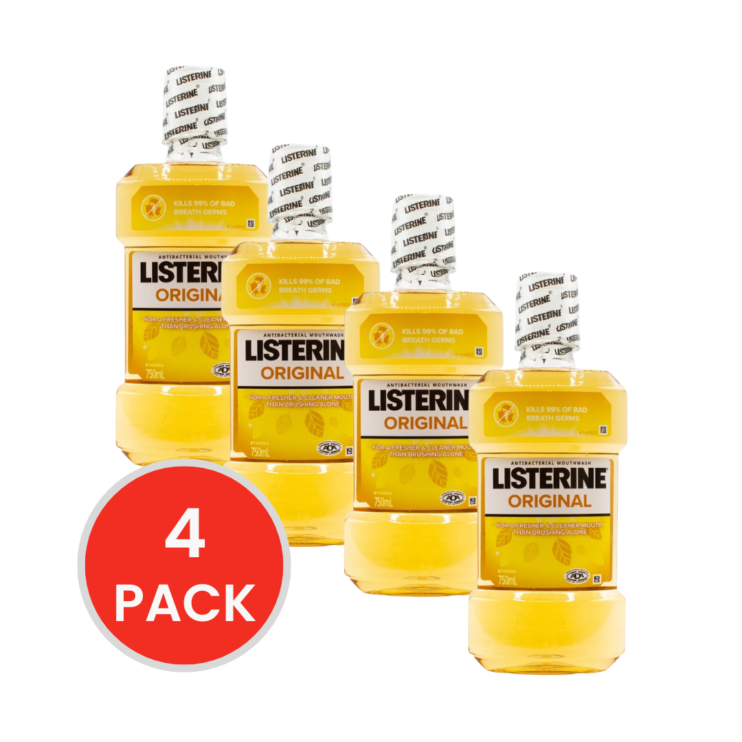 Keep your mouth clean and your breath fresh with the classic power of LISTERINE Original Mouthwash – 750mL (4x Pack). This bold, no-nonsense formula is clinically proven to kill 99.9% of germs that cause bad breath, plaque, and gum disease. With its unmistakable original flavor, LISTERINE Original delivers a deep clean that brushing alone can’t reach—making it a trusted choice for generations.