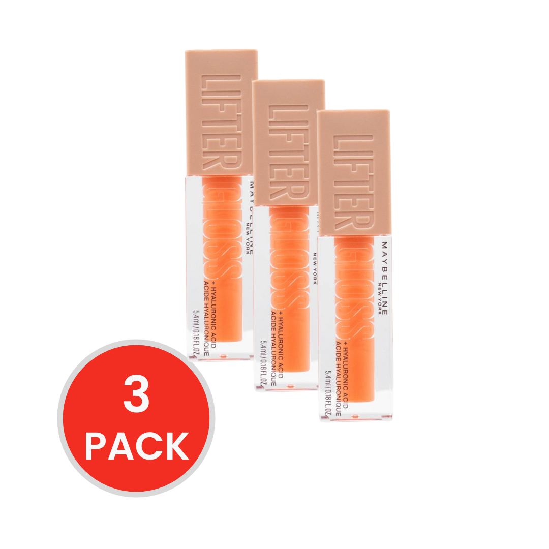 Get irresistibly soft and glossy lips with Maybelline Lifter Gloss in Peach Ring 22. Infused with hyaluronic acid, this lightweight lip gloss hydrates, plumps, and smooths for a naturally luscious look. The Peach Ring 22 shade adds a delicate peachy shimmer, perfect for everyday wear or layering over lipstick for a subtle glow. Each pack contains 3 carded units of 5.4mL, ideal for personal use, gifting, or professional makeup kits. Achieve hydrated, radiant, and kissable lips effortlessly with Maybelline Lifter Gloss.