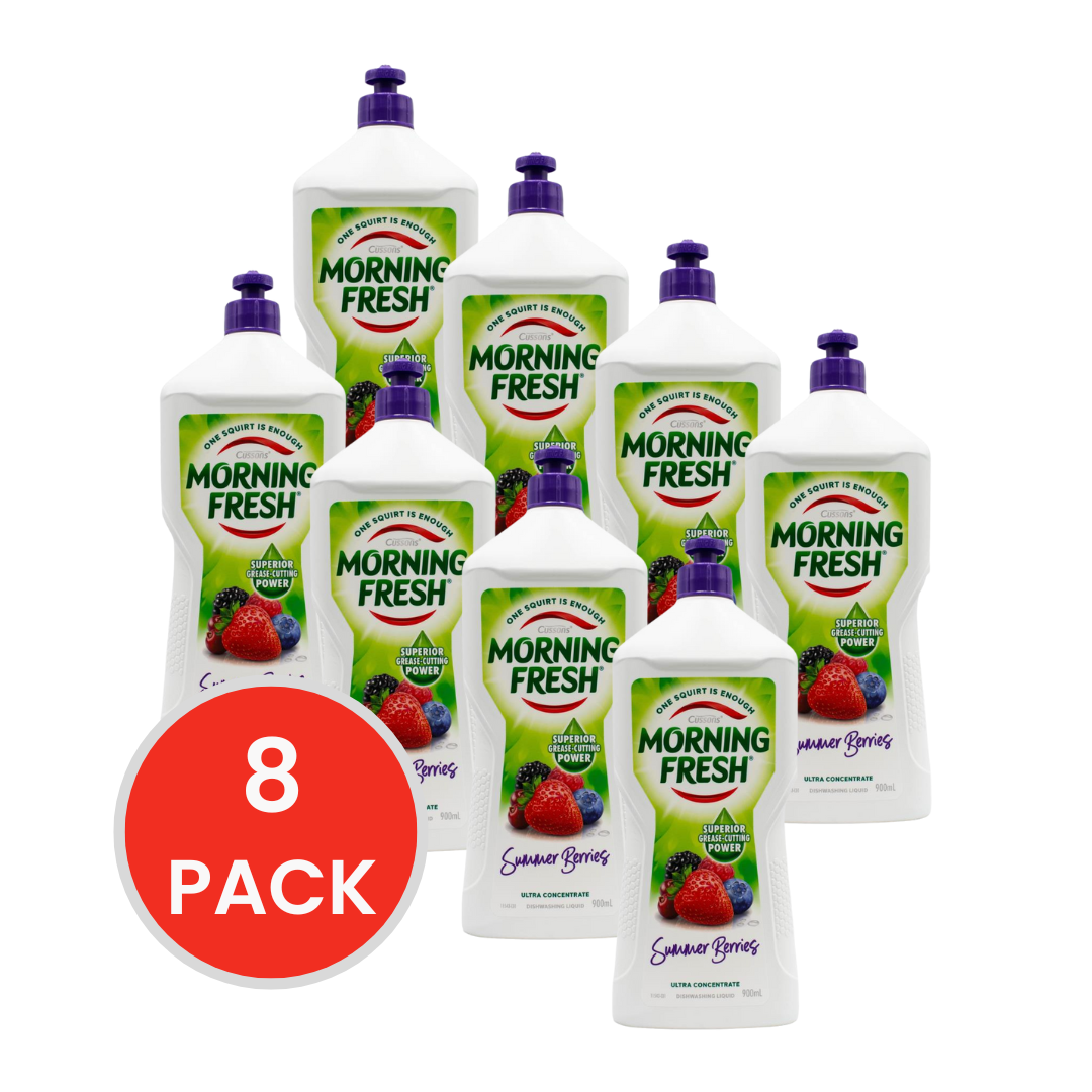 Morning Fresh 900mL Dishwashing Liquid Ultra Concentrate Summer Berries (8x Pack) combines Australia's #1 dishwashing liquid with a delightful summer berries fragrance. This ultra-concentrated formula ensures superior grease-cutting power, making dishwashing efficient and enjoyable. With 8 x 900mL bottles, this pack offers long-lasting value for households seeking both performance and a refreshing scent in their dishwashing routine.