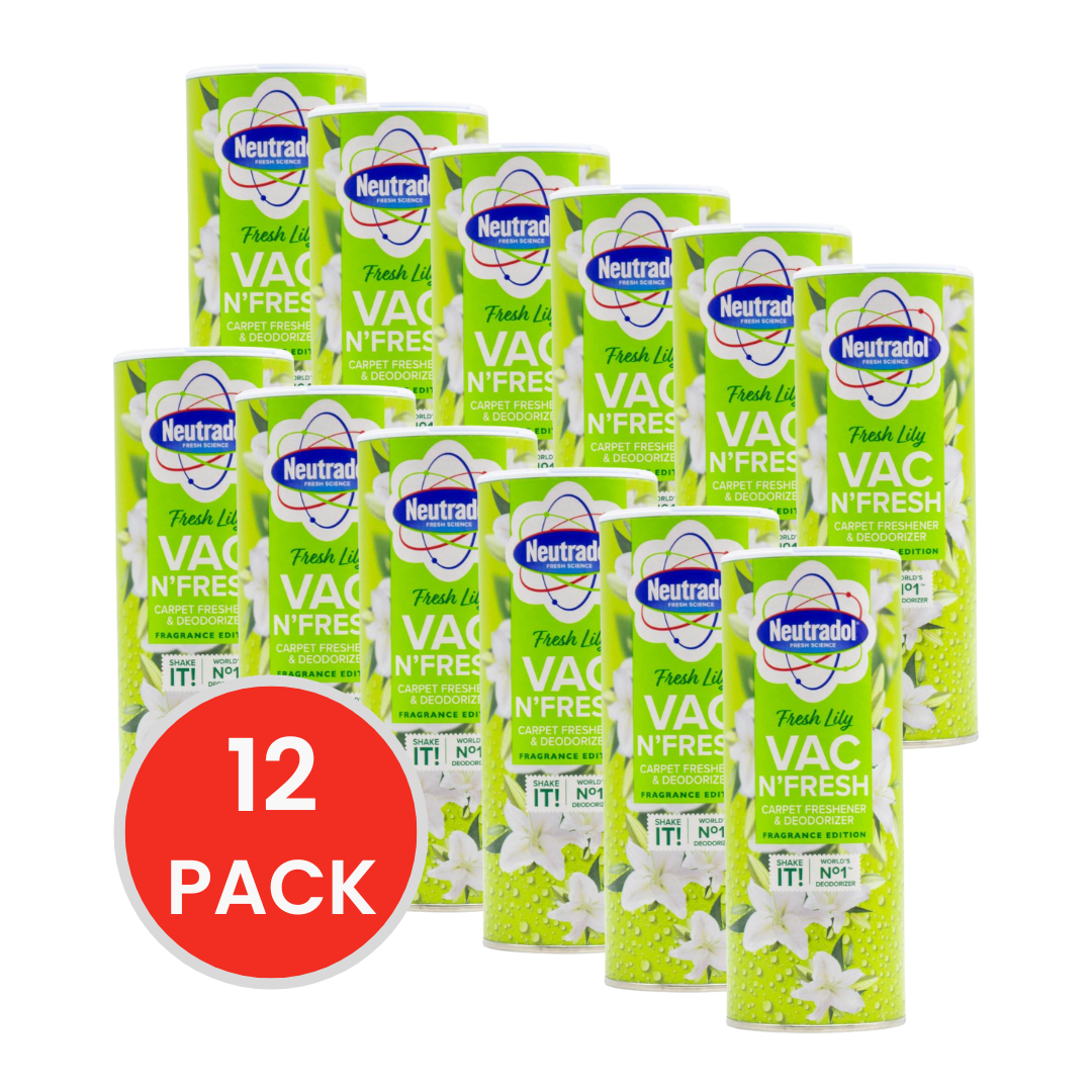 Transform your home with the floral freshness of Neutradol Vac N Fresh Carpet Deodorizer – Fresh Lily. This powerful odour neutralizer targets deep-down smells in carpets, rugs, and upholstery, replacing them with a clean, light lily fragrance. Simply sprinkle, let sit, and vacuum — no scrubbing required.