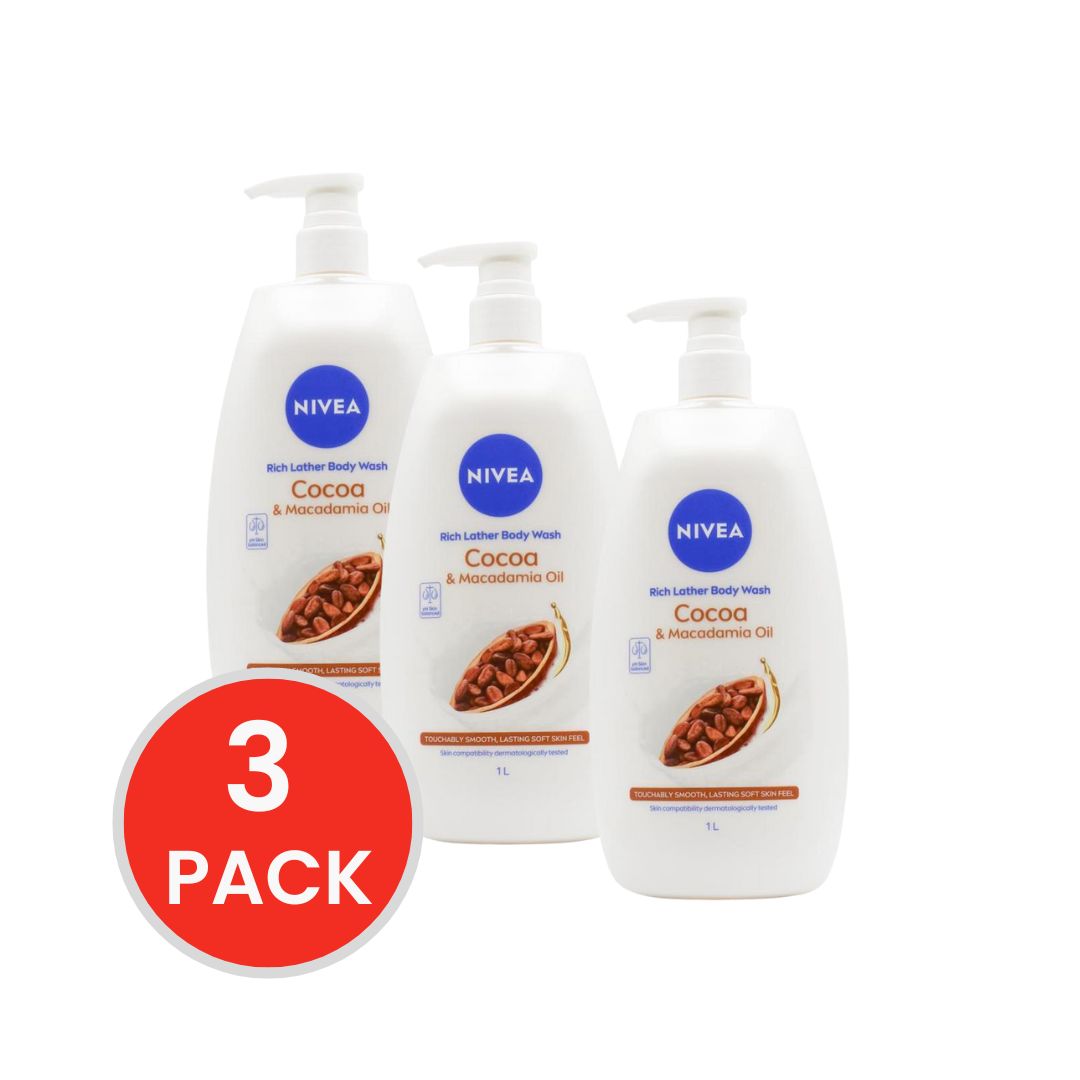 Nivea Body Wash Cocoa & Macadamia Oil 1L (3 Pack)