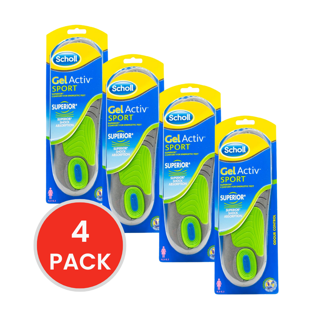 Scholl Women Gel Activ Sport Insoles Size 4.5-8.5 (4 Pack)